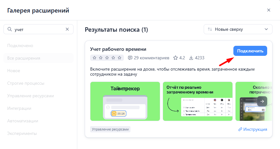 После этого в настройках досок всех проектов компании появится пункт "Таймтрекинг":