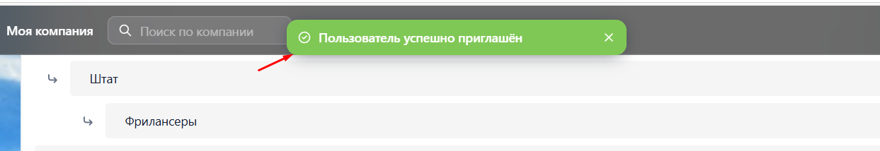 После успешной отправки приглашения появится уведомление об этом: