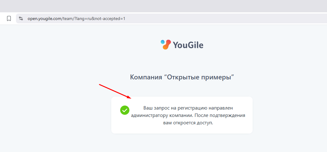 Пользователь увидит окно следующего вида, ему нужно будет подождать, пока запрос будет одобрен администратором.