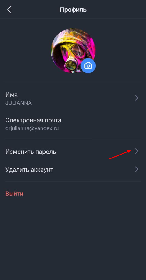 Для изменения пароля (если вы знаете старый пароль) нужно перейти в "Настройки", нажать на свое имя - откроется "Профиль".