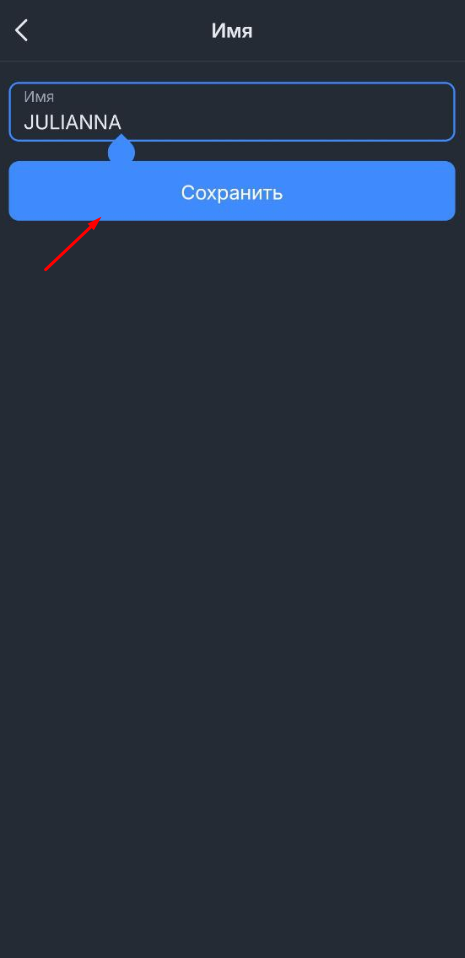 Далее нужно нажать на "Имя". В открывшемся окне указать новое значение имени и сохранить его.