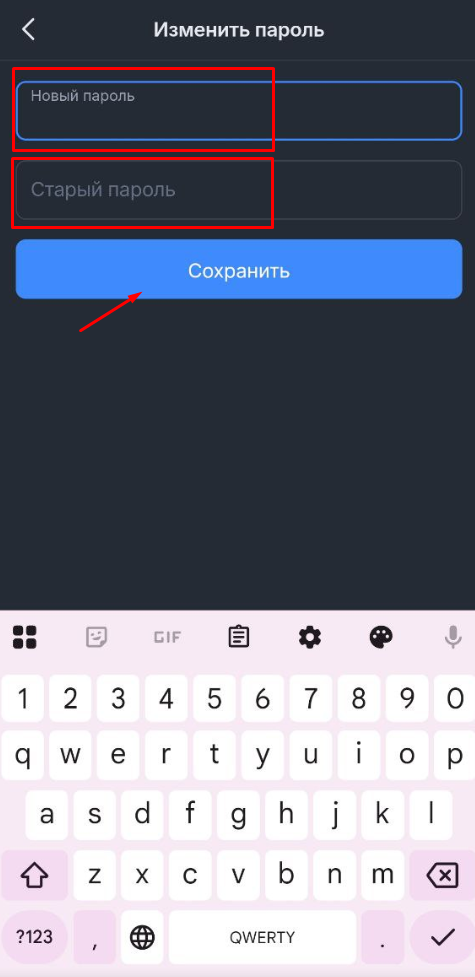 Нужно указать старый и новый пароль, нажать на "Сохранить".